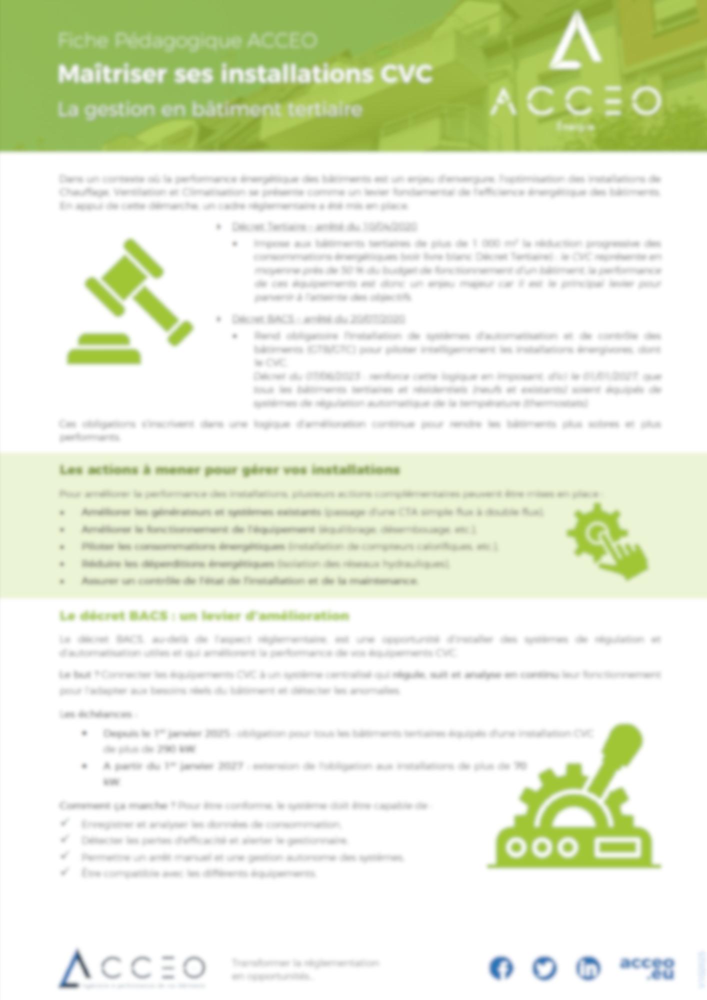 Une fiche pour tout comprendre sur les installations de Chauffage, Ventilation et Climatisation en bâtiment tertiaire.
