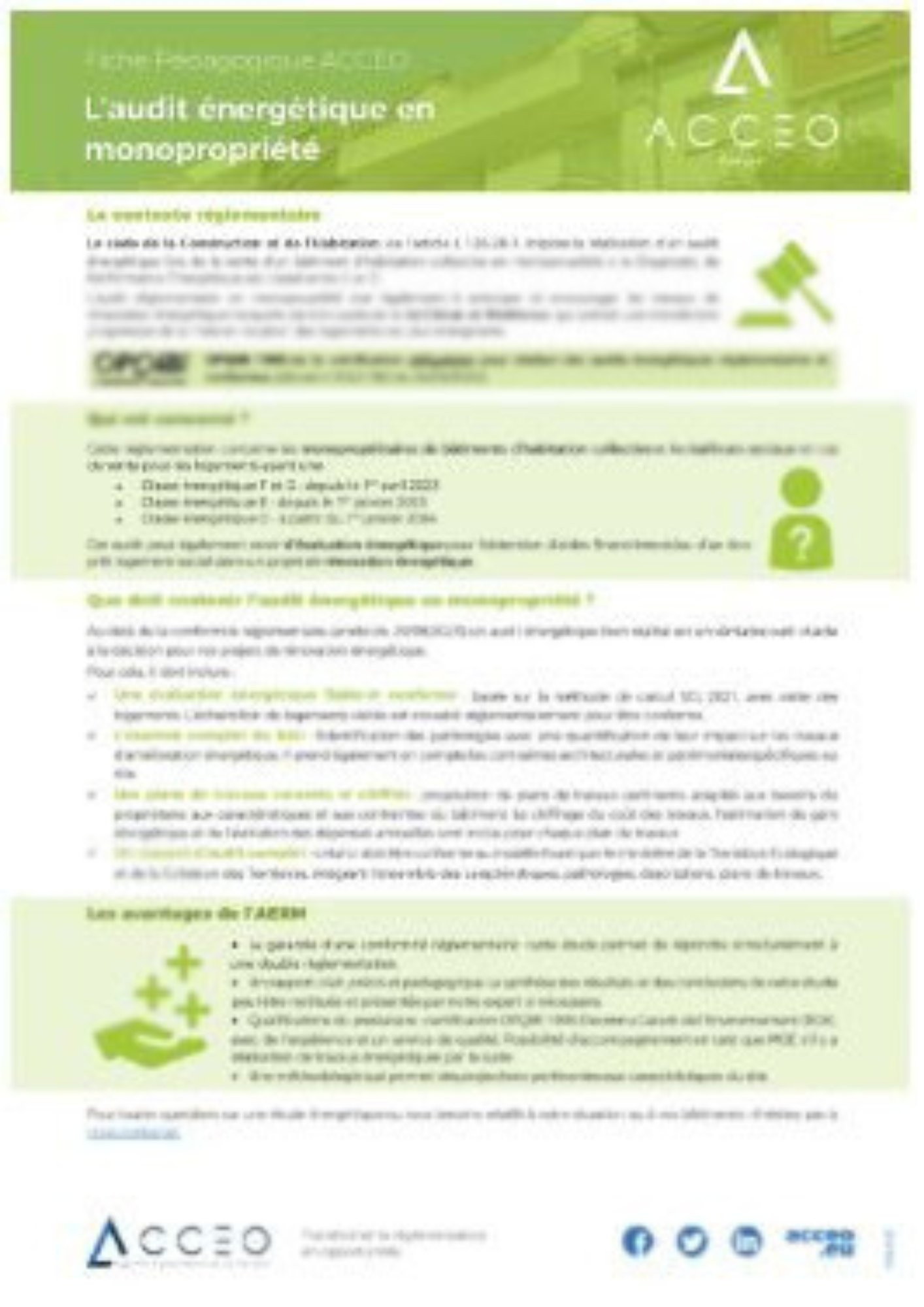 Une fiche pour réussir son audit énergétique en monopropriété. Décryptage de la réglementation, les éléments clés...