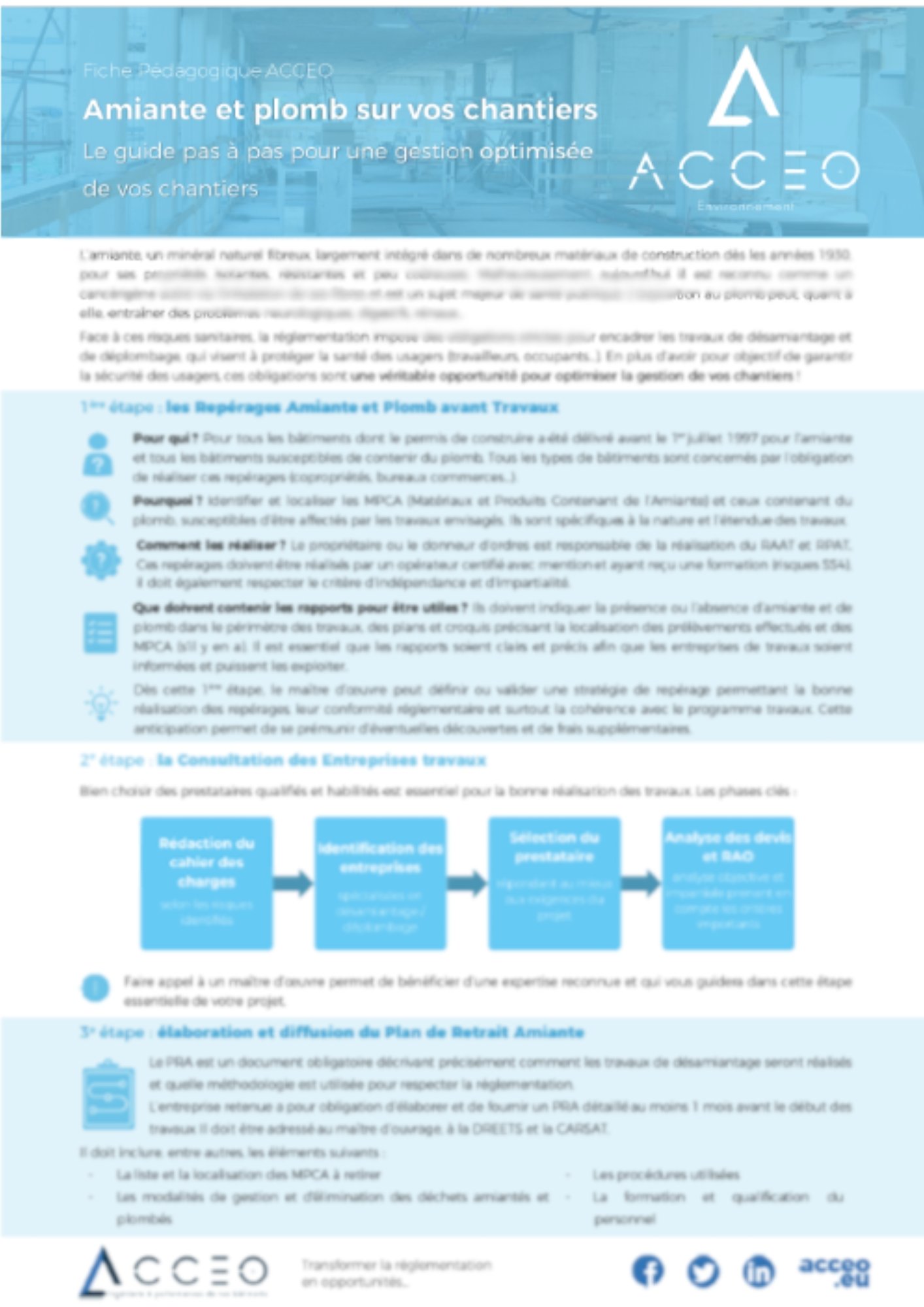 Une fiche pour tout savoir sur la gestion de l'amiante et du plomb ! Décryptage de la réglementation, les étapes clés...