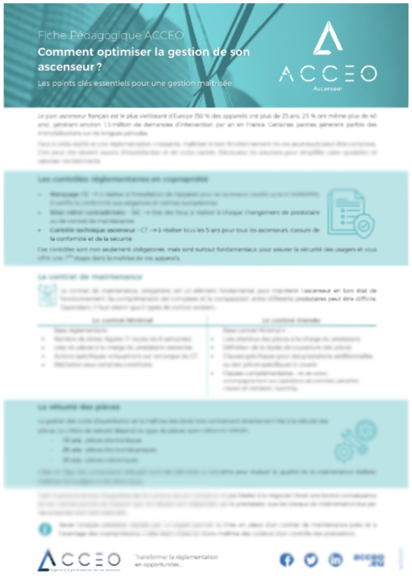 Une fiche pour tout savoir sur la gestion des ascenseurs ! Décryptage de la réglementation, les éléments clés...
