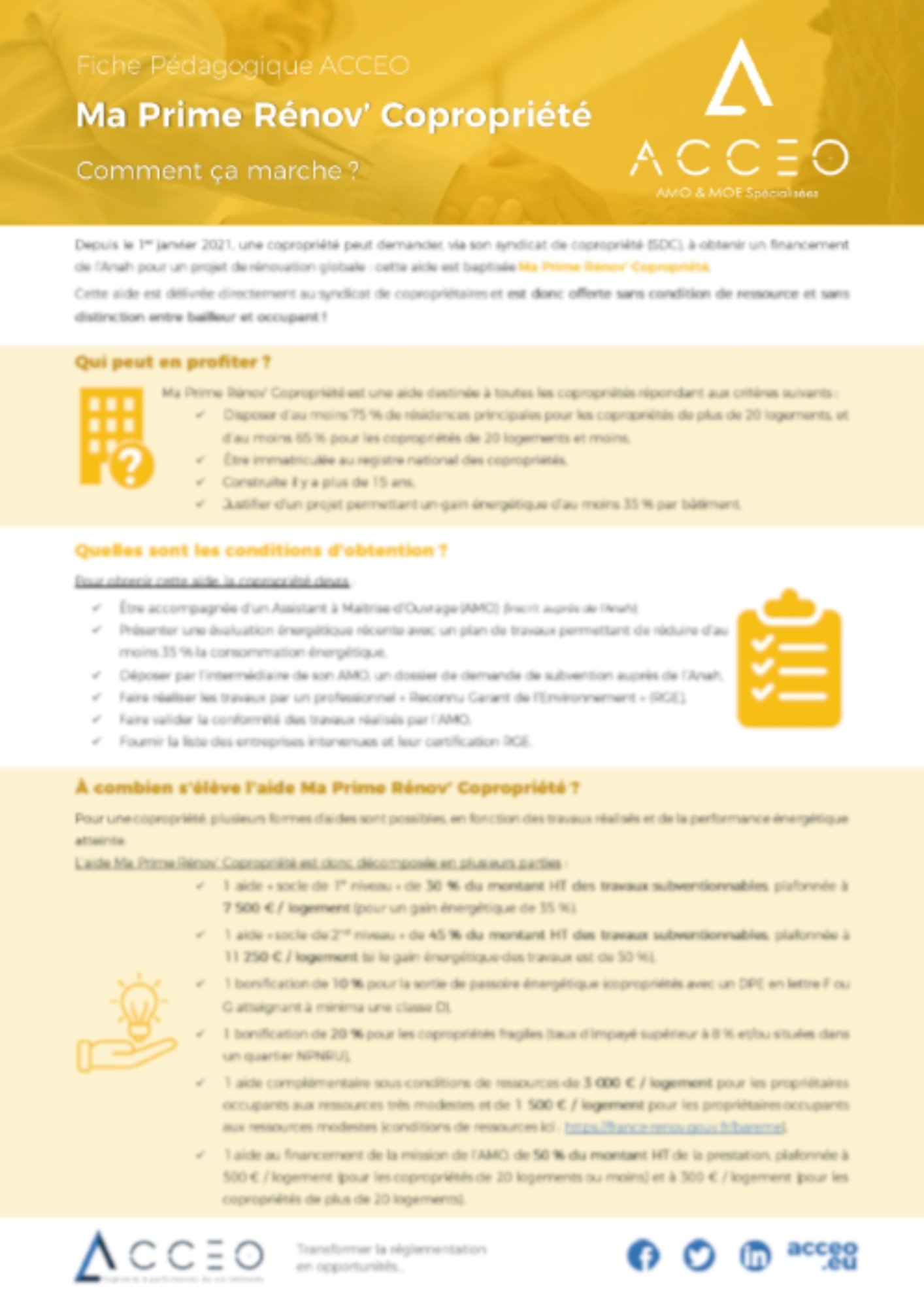 Quelles aides ? Quels montants ? Pour quels travaux ? Pour quelles copropriétés ?