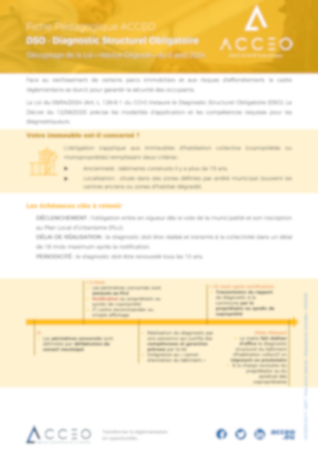 Une fiche pour décrypter la loi "Habitat Dégradé" du 9 avril 2024 qui instaure le diagnostic structurel obligatoire.